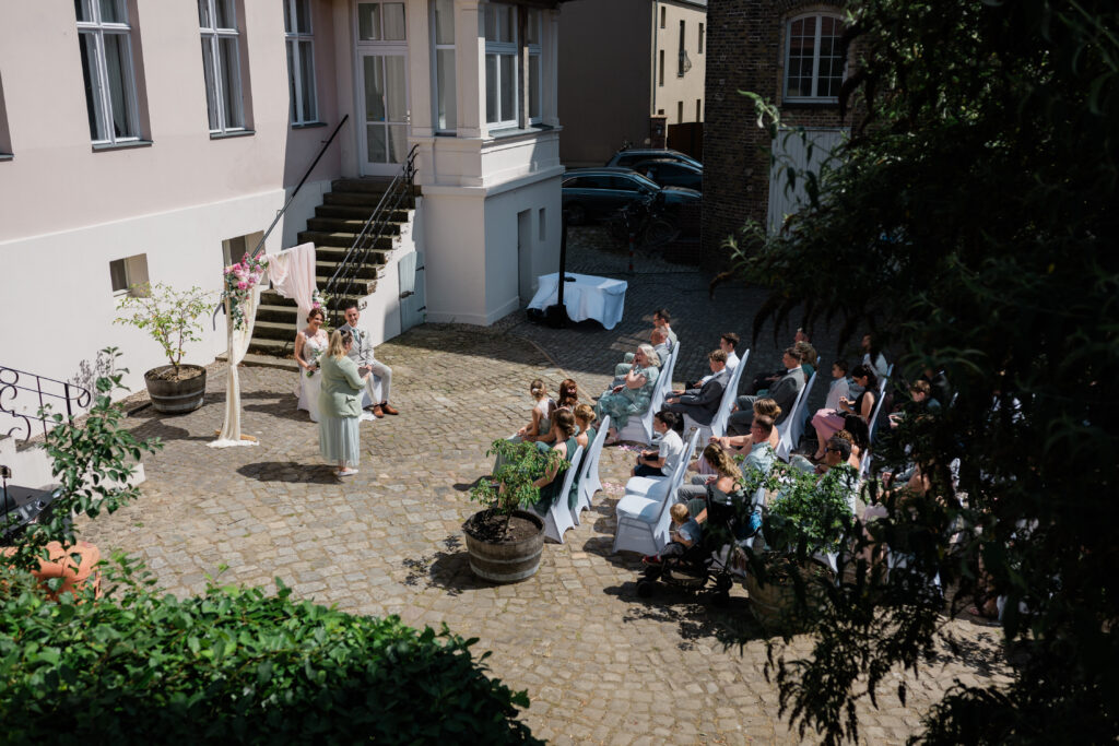 Eine freie Trauung im Hofgarten des Fliederhofs ist für mich als freie Rednerin jedes Mal ein schönes Erlebnis. Gerade zur Blütezeit im Frühjahr entfaltet der Hofgarten seine volle Wirkung. Aber auch außerhalb dieser Zeit ist der Garten mit alten Bäumen und dem charmanten Hofambiente eine stimmige Kulisse für eure Zeremonie.