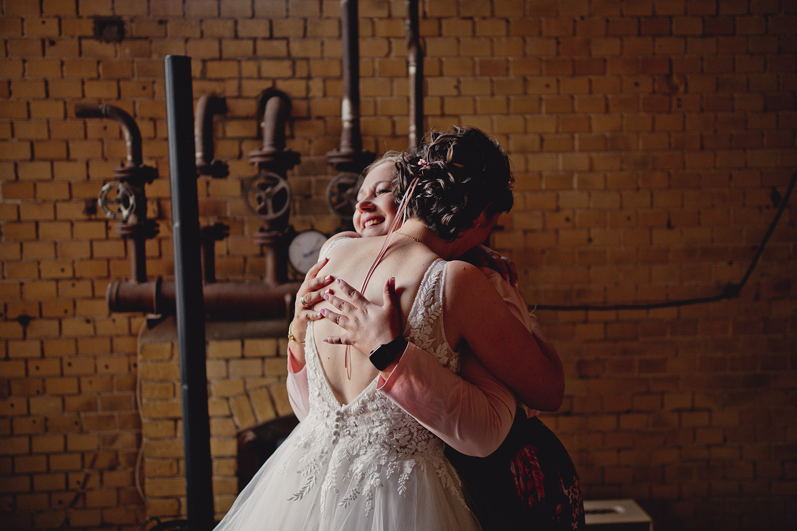 Die freie Trauung war ursprünglich draußen geplant. Doch dann kam plötzlich der Starkregen – und wir mussten mittendrin flüchten. Statt Stress entstand aber etwas Wunderschönes: In der alten Brennerei, umgeben von allen Herzensmenschen, Lachen und dem Prasseln des Regens, wurde die Trauung zu einem unglaublich intimen und echten Moment.